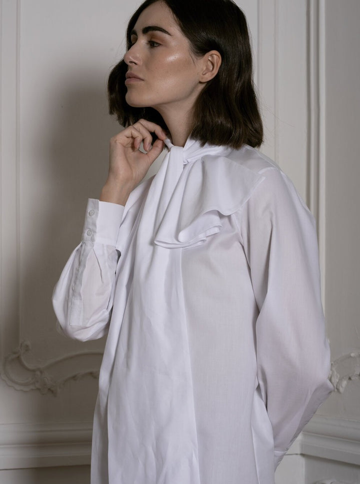 Evigrintela’s White Shirt with Bow gives the traditional white shirt a feminine touch. This outfit mixes a bow tie’s charm with the classic appeal of a spotless white shirt. The bow feature is skillfully positioned, adding a distinctive visual element that improves the entire appearance. This shirt is a must-have wardrobe essential, whether you pair it with tailored pants for a polished appearance or with jeans for a laid-back day out.