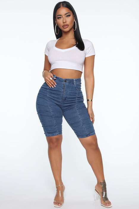 5. Ruched Denim shorts: