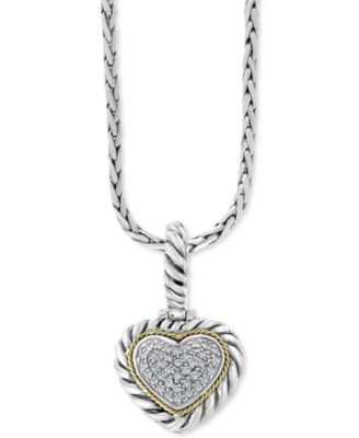 EFFY® Diamond Heart Cluster 18″ Pendant Necklace (1/5 ct. t.w.) in Sterling Silver & 18k Gold